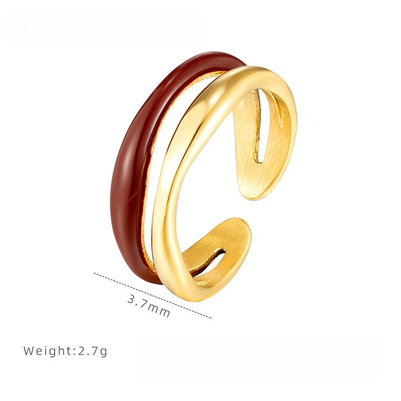 Кольцо двойного слоя с открытой шинкой «Капля масла», Модное и холодное кольцо из бамбуковой титановой стали, Простое и не выцветающее кольцо 9