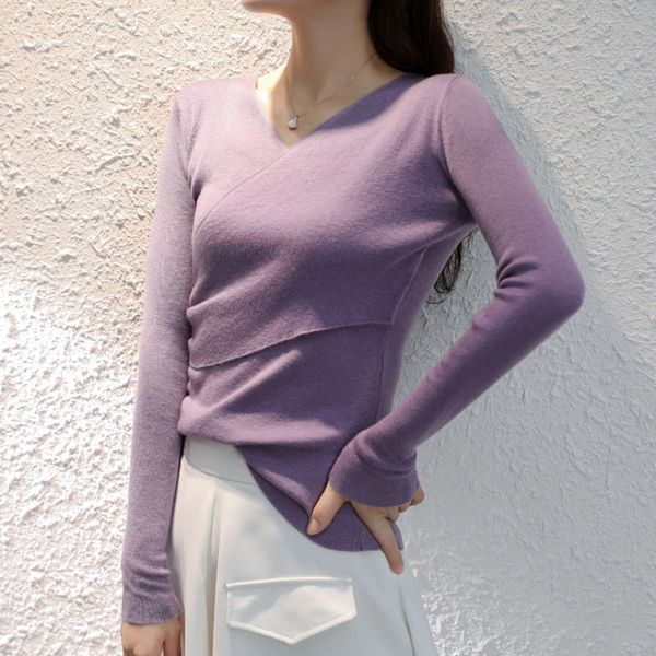 2020v neck merino women's thin knitted sweater long sleeve slim bottomed blouse, White;black