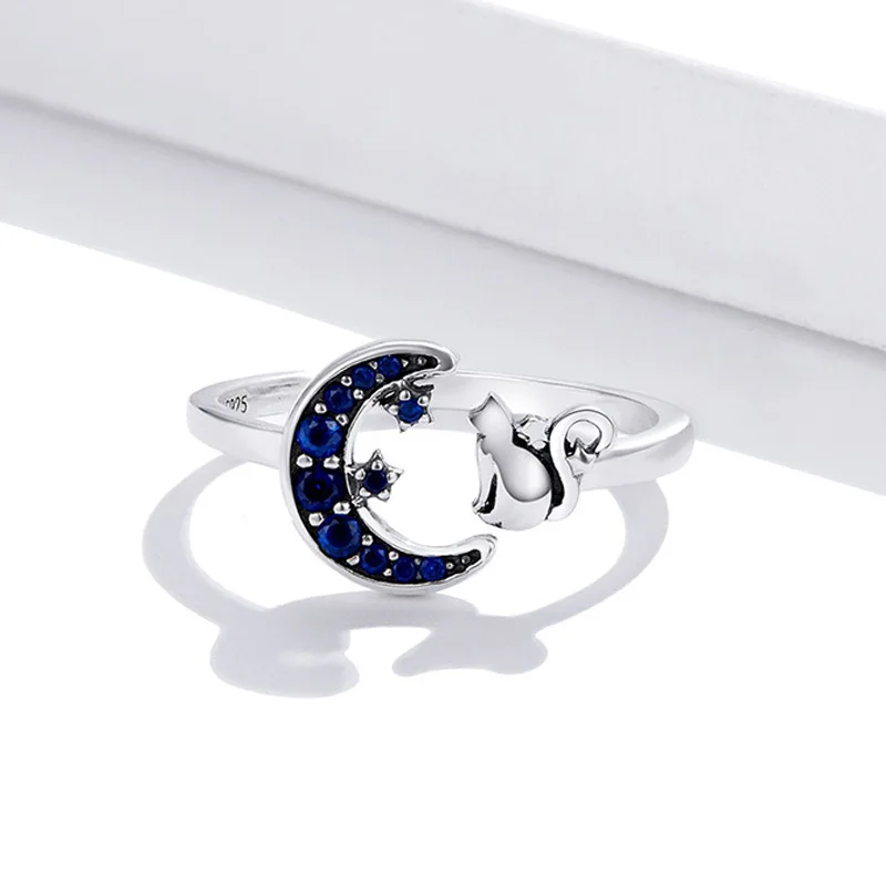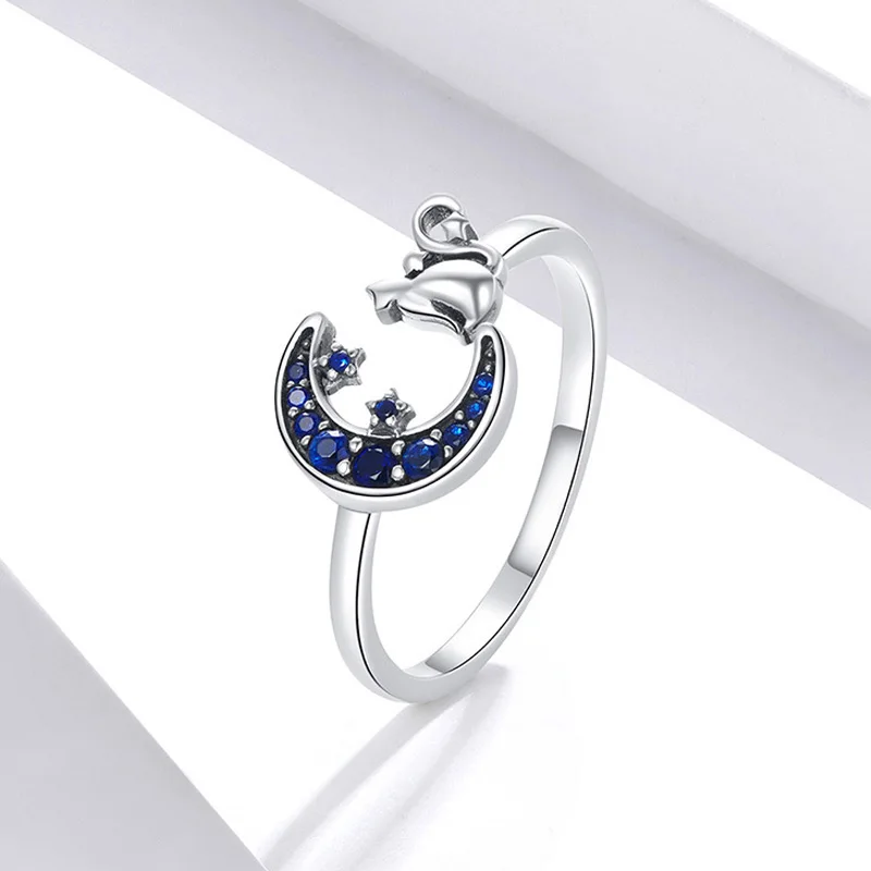 Кольцо женское летнее регулируемое из серебра 100% пробы с цирконом и синим полумесяцем