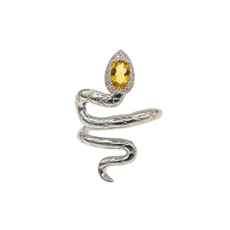 Кольцо-змея из стерлингового серебра 925 пробы с швейцарским голубым топазом и желтым кристаллом - Изысканный модный стиль Adjustable