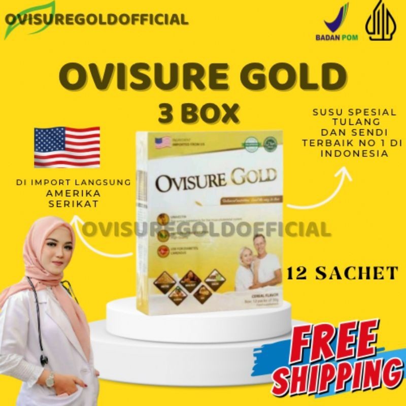 3 BOX OVISURE GOLD SUSU OBAT VITAMIN TULANG DAN SENDI SYARAF KEJEPIT KERAM ORIGINAL USA