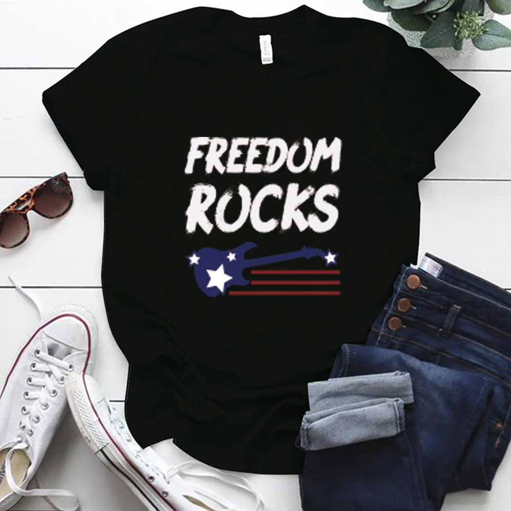Женские футболки с принтом Freedom Rocks, футболки с коротким рукавом и круглым вырезом, летние женские футболки с графическим принтом, Camiseta Mujer 2020...
