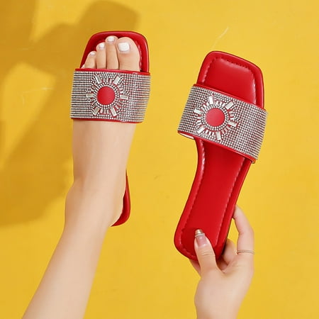 Womens Open Toe Sandals non Slip- Beach Outside New Casual Sandals Red Size 7