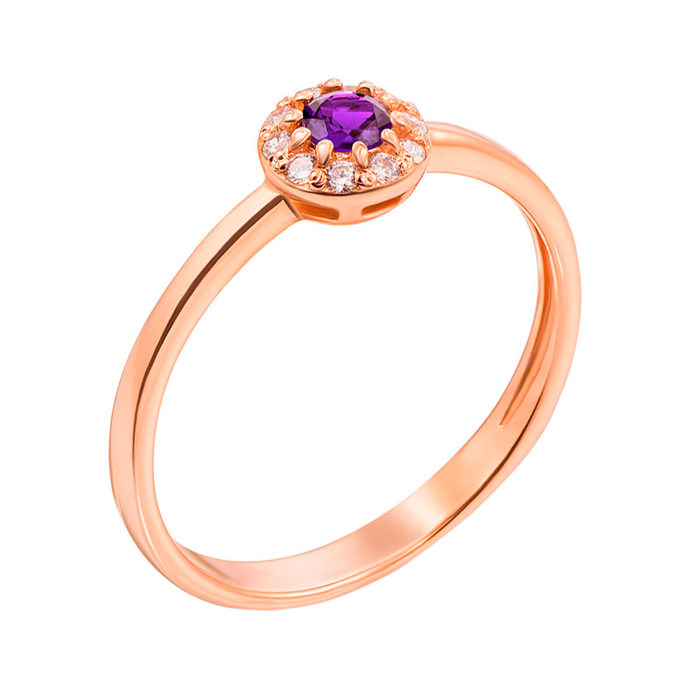 Кольцо из красного золота с аметистом и фианитами 000131266 17.5 размера