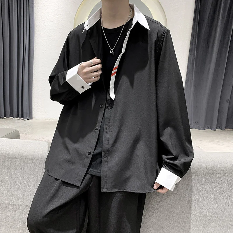 Рубашка мужская оверсайз с длинным рукавом, тонкий Свободный Топ с отложным воротником и принтом, Повседневная Всесезонная одежда, уличный тренд