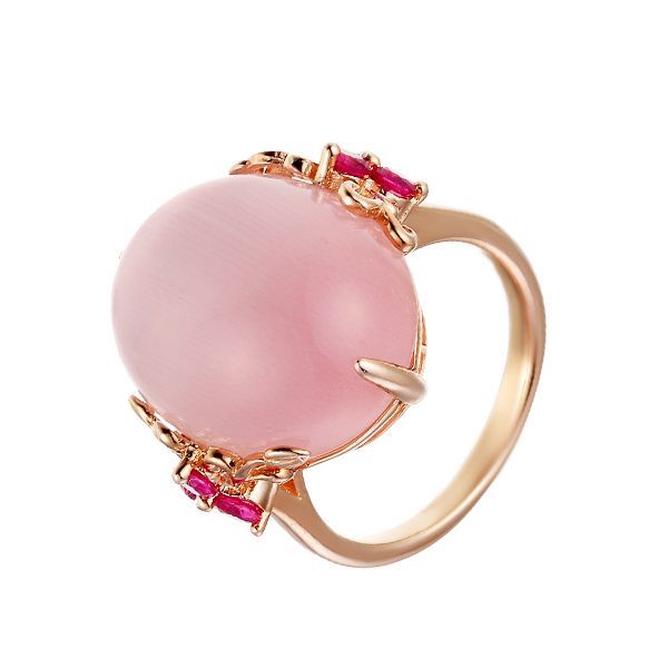 Кольцо из серебра р. 17 JV SR000766C-1_TE_001_PINK, кошачий глаз\фианит, SR000766C-1_TE_001_PINK