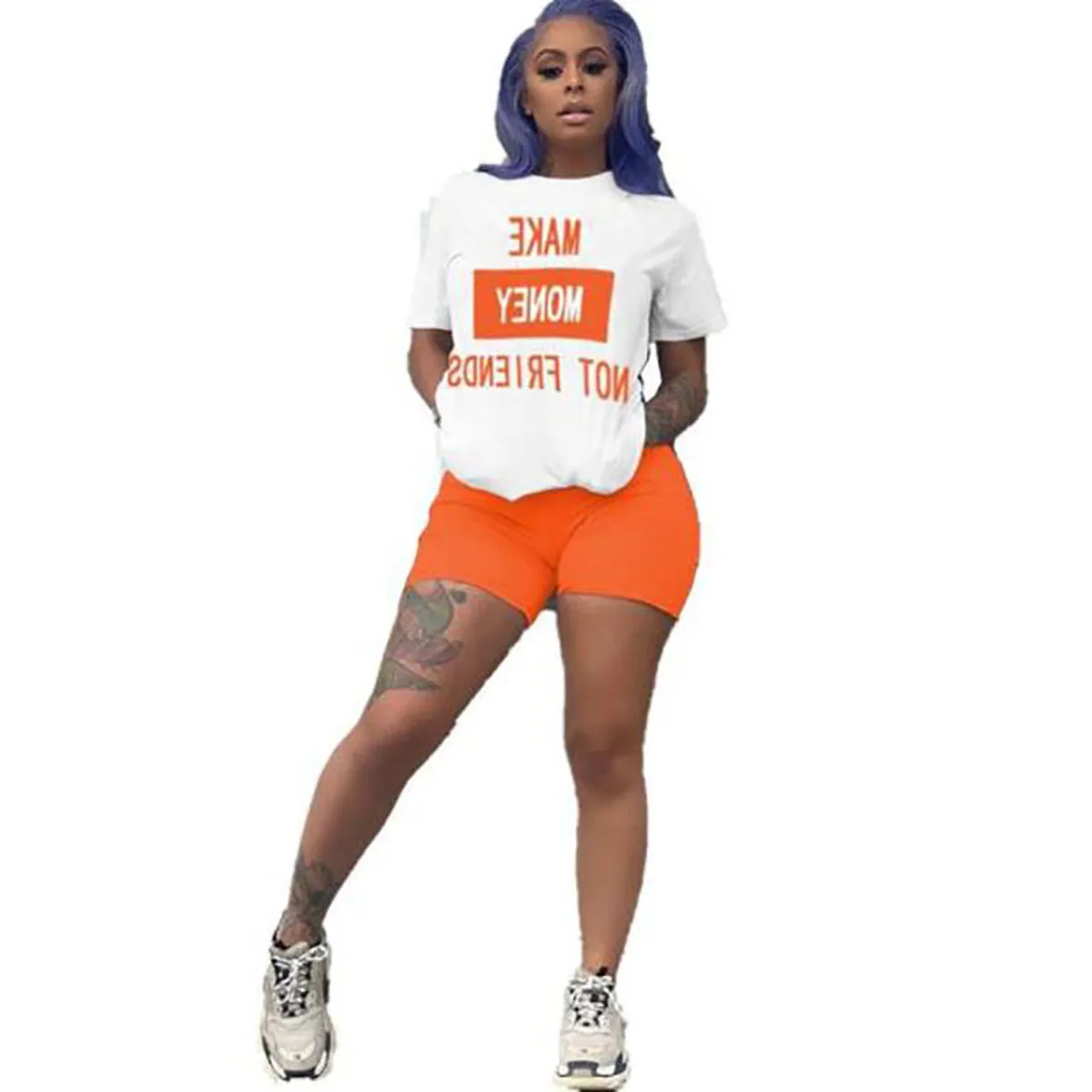 Fashion Lounge Wear Two Pieces Set Women T Shirt Biker Shorts Set Summer Clothes For Women 2020 Letter Print Matching Sets