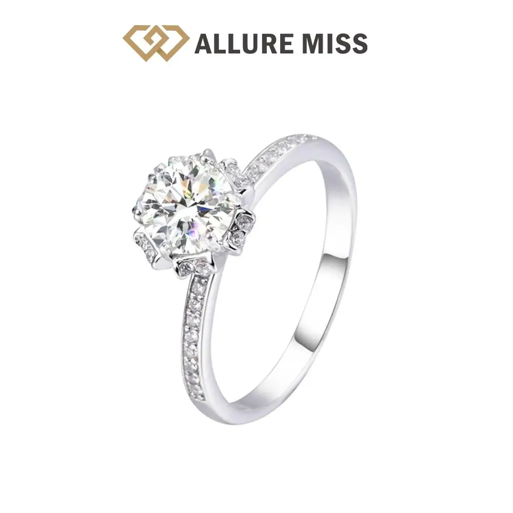 Кольцо из серебра 100% пробы с муассанитом, с инкрустированными бриллиантами