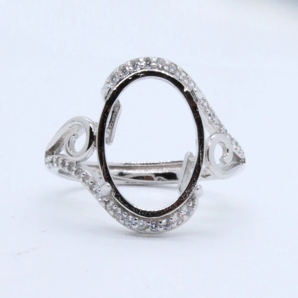 Кольцо из серебра 925 пробы с полуободковым камнем 10 мм * 14 мм