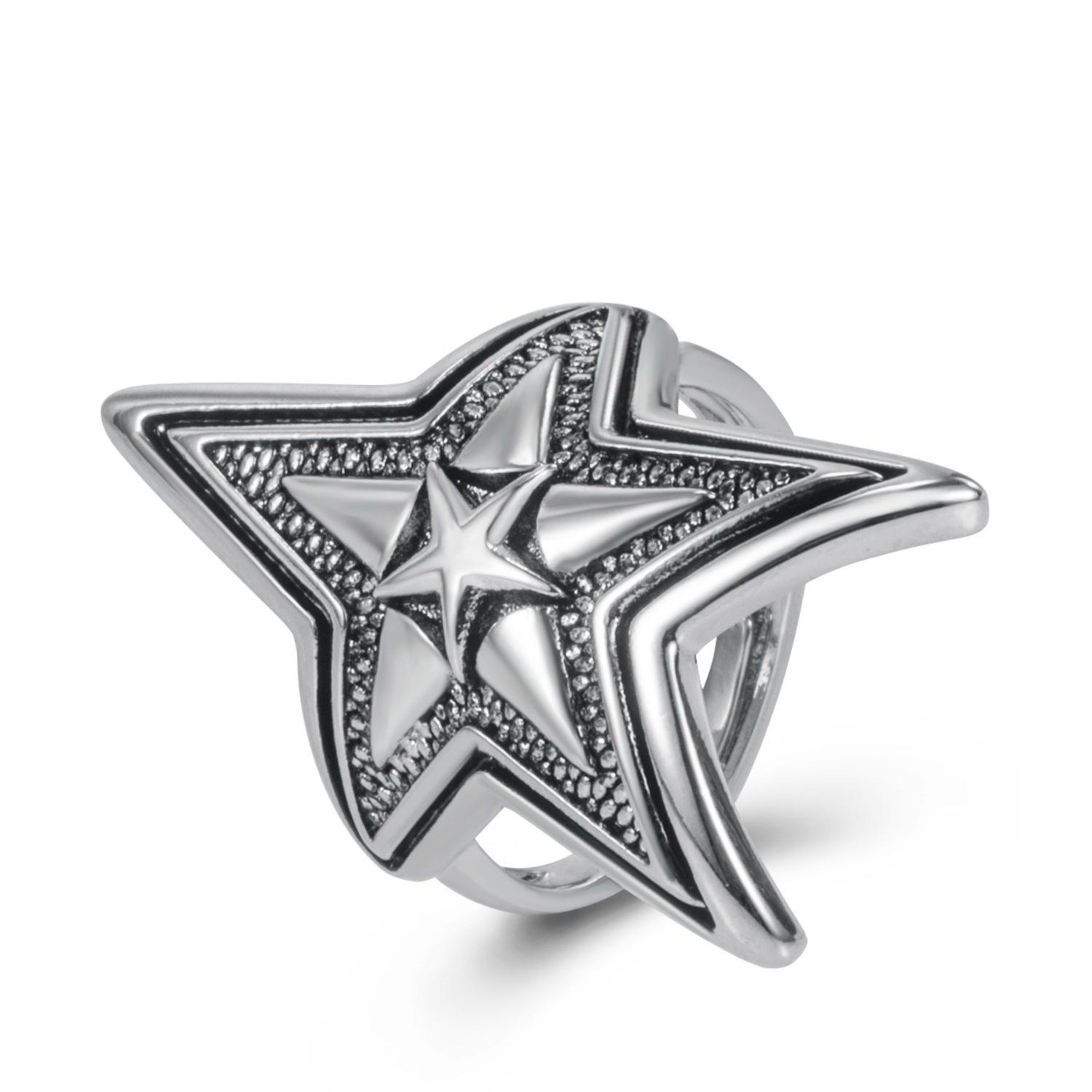 Кольцо из серебра 925 пробы, тайское серебро, черное двухслойное перекрывающееся пятиконечное кольцо в виде открытой звезды, мужское модное кольцо в стиле панк-ретро в стиле рок-звезда one size