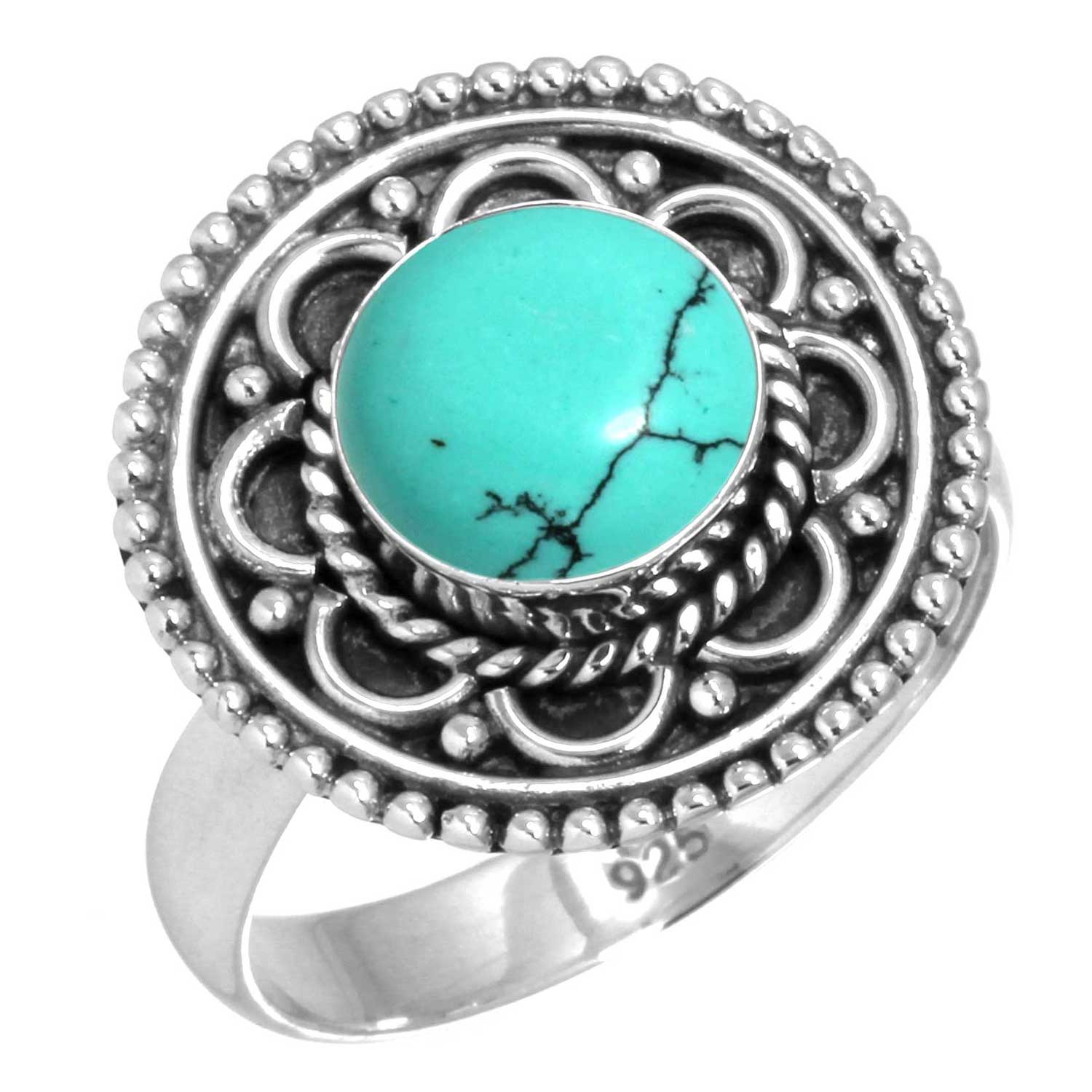 Кольцо из стерлингового серебра 925 пробы Женское Драгоценный камень Ручная работа Ювелирные изделия Подарок на День матери Синий Зеленый Фиолетовый Медь Бирюза Жемчуг Лазурит Перламутр Винтаж 9 бирюзовый
