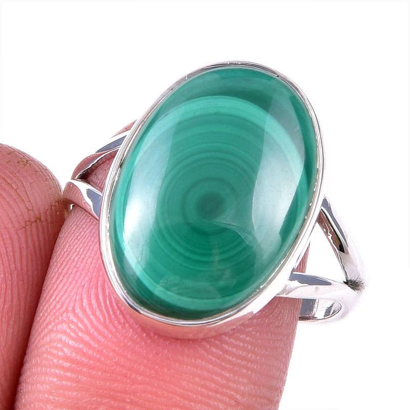 Кольцо из стерлингового серебра 925 пробы с натуральным малахитом, размер 9 W5s25