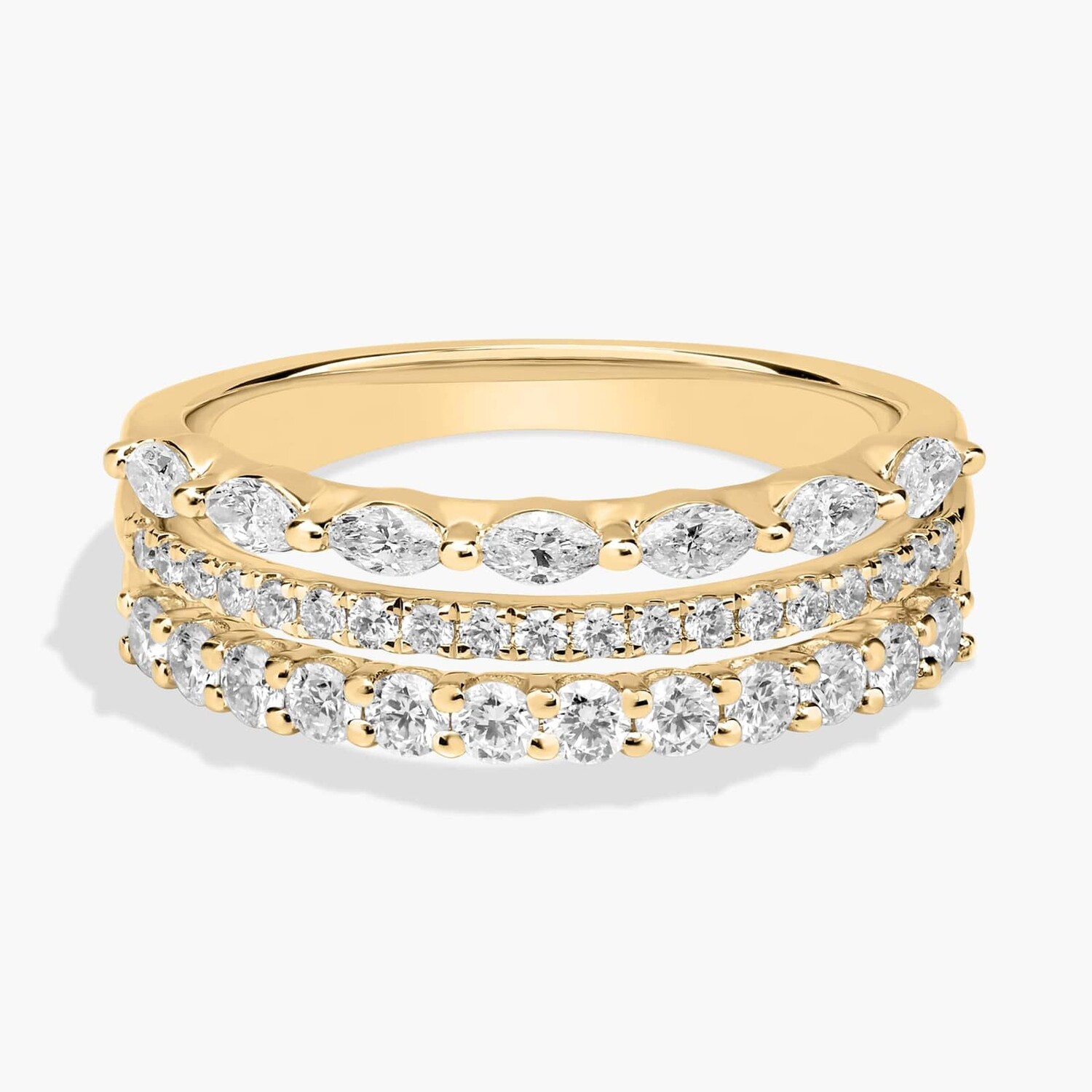 Кольцо из 3 рядов, желтое золото 14 карат (3/4 карата, двойной цвет) Blue Nile
