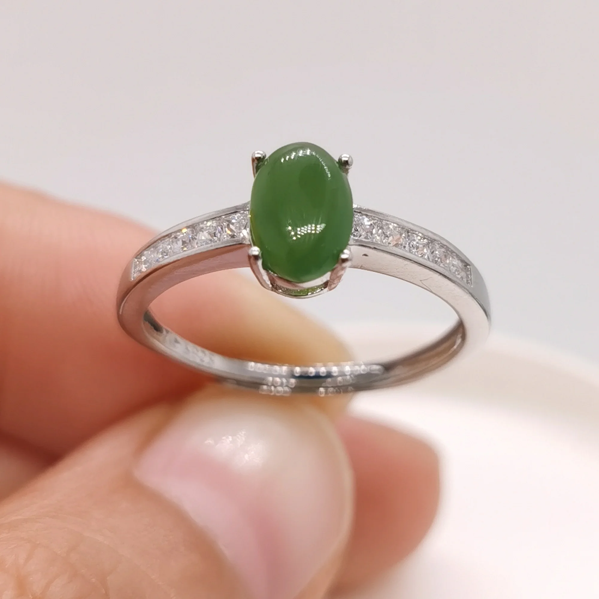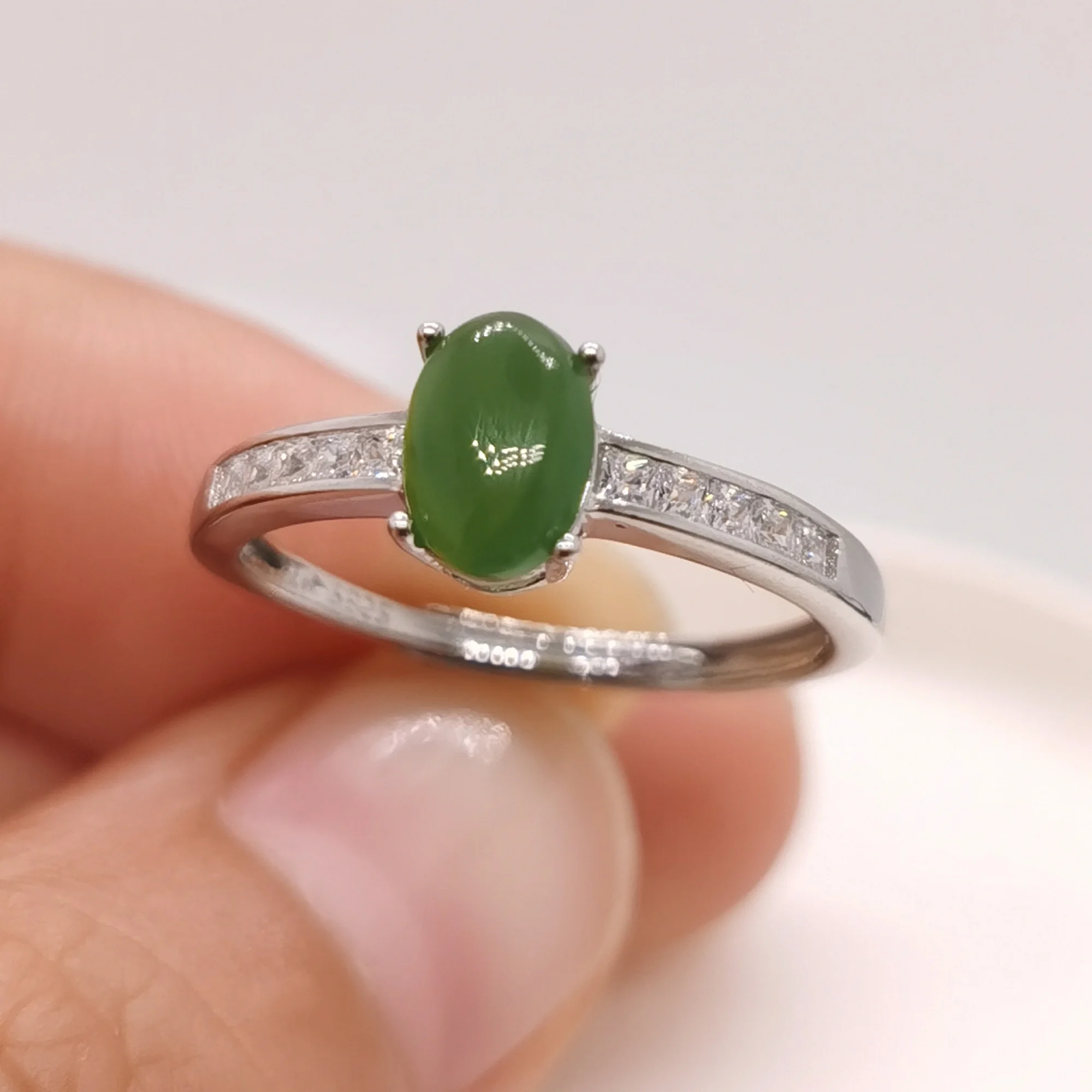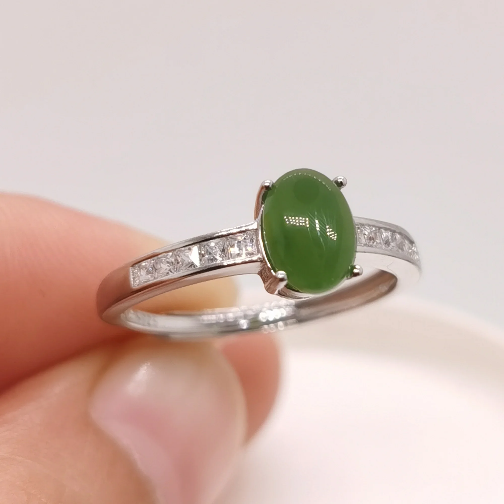 Кольцо из 925 серебра, зеленый нефрит, для ежедневной носки, размером 5 на 7 мм, покрытие золото 18 К