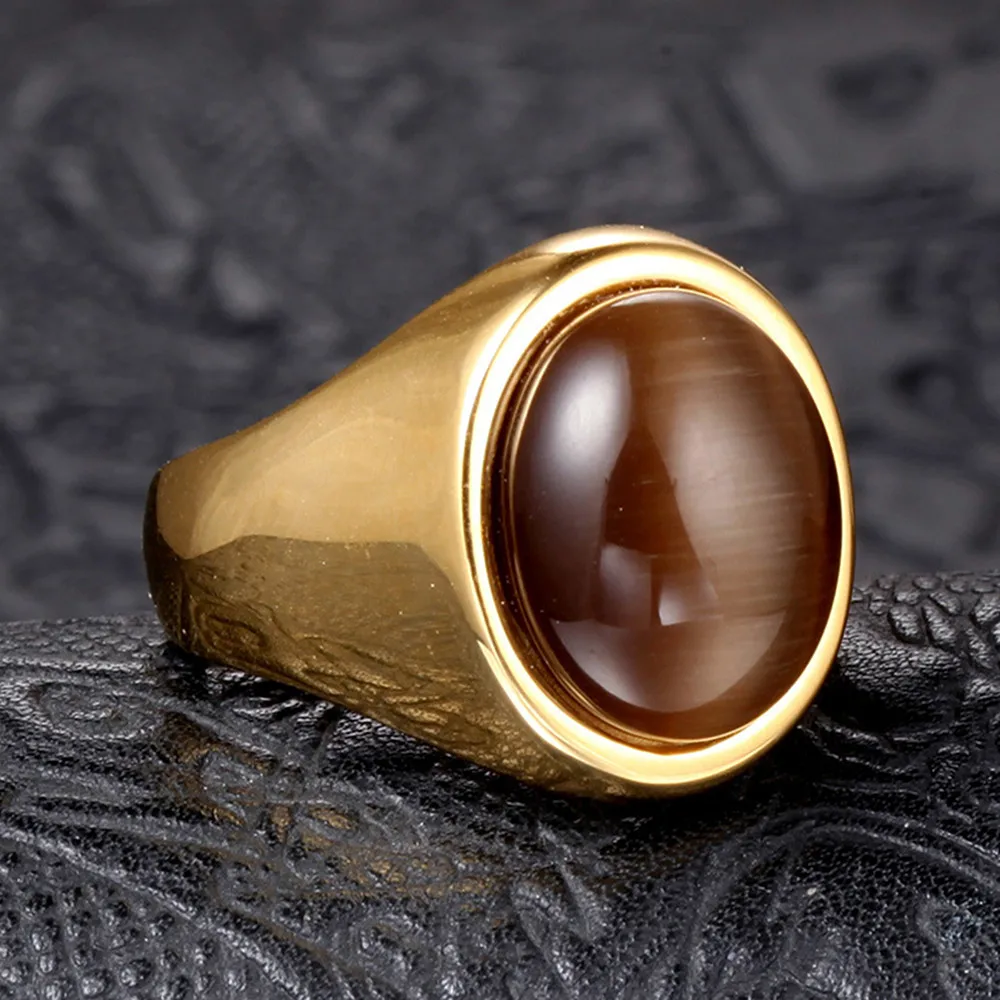 Кольцо мужское с коричневыми камнями и кошачьими глазами, из нержавеющей стали