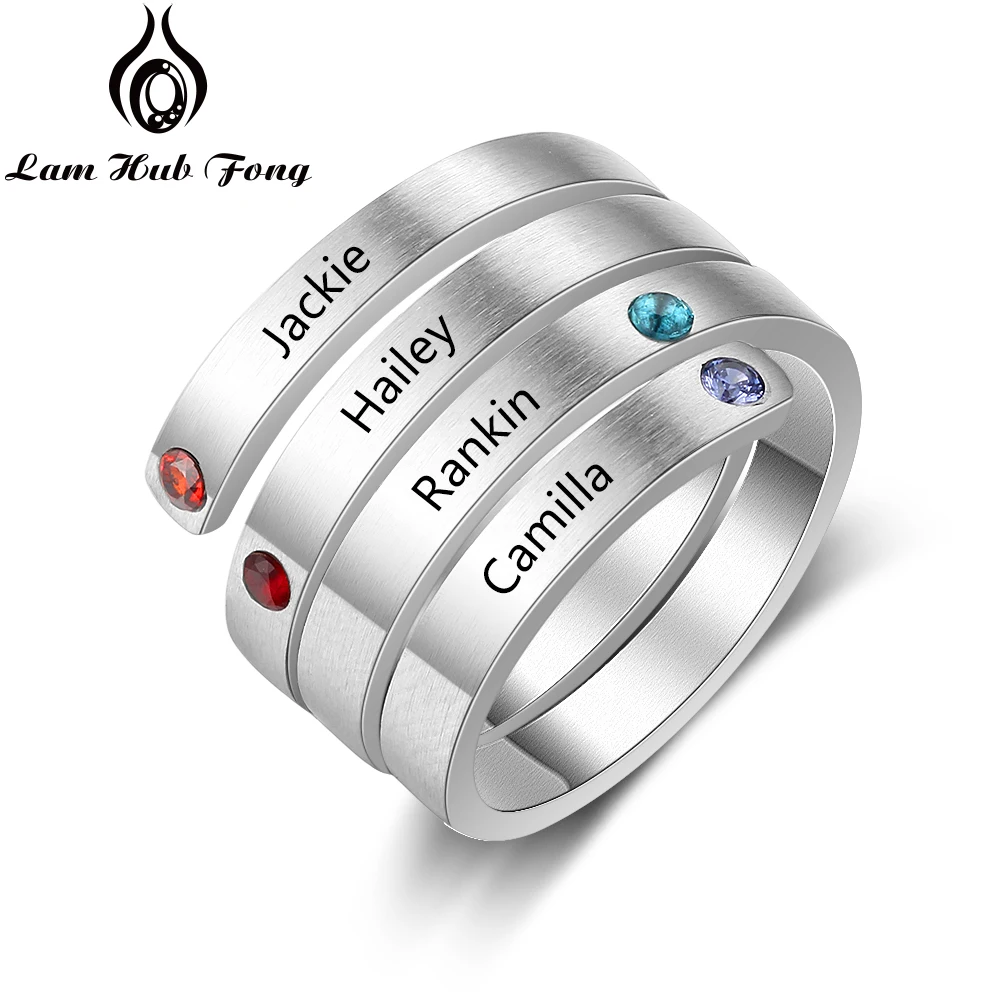 Кольцо на заказ для матери, кольцо с выгравированным дизайном, 4 именных кольца, семейные украшения, подарок на день рождения для женщин (Lam Hub Fong)