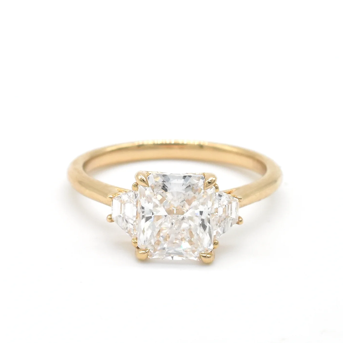 Кольцо обручальное с трапециевидным бриллиантом, 14 к