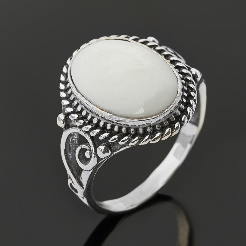 Кольцо перламутр белый (серебро 925 пр. оксидир.) размер 18