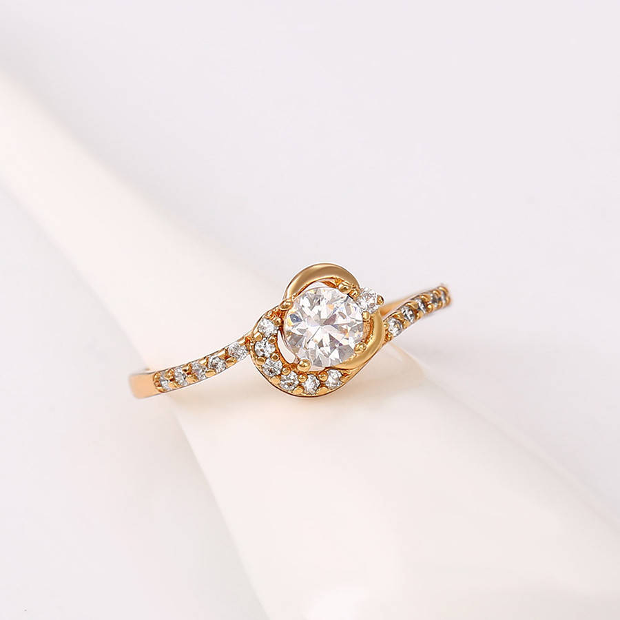 Кольцо позолота, Фигурный цветочек с цирконием, p.17, р.18, Xuping, 18К
