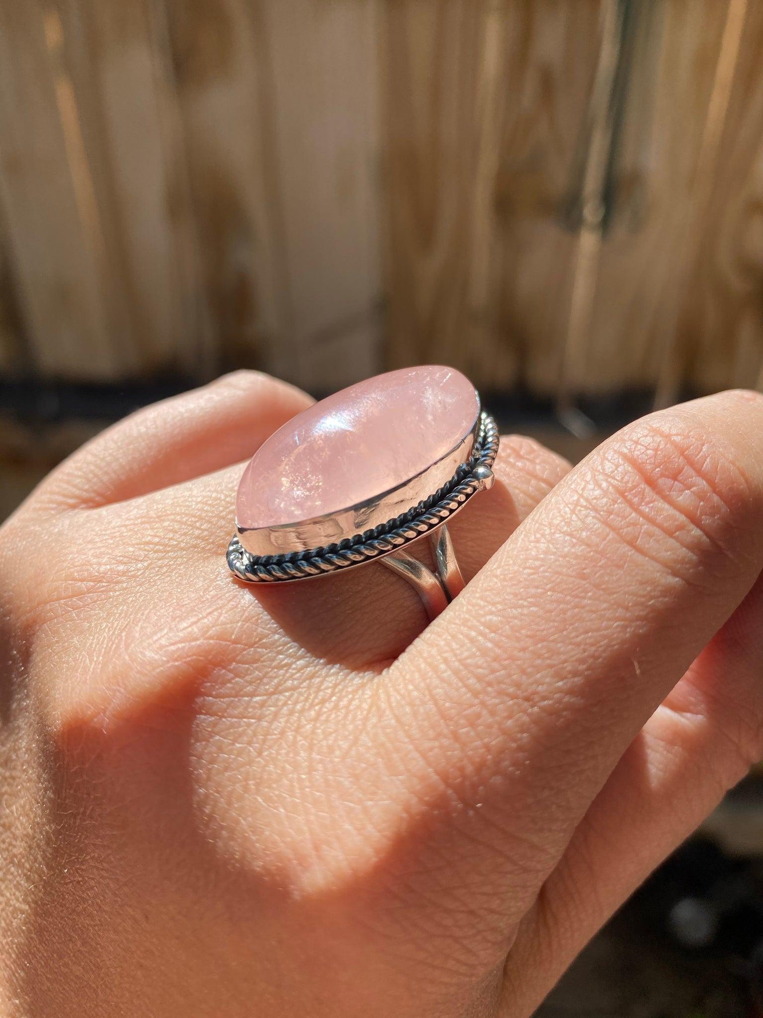 Кольцо ручной работы из цельного серебра 925 пробы с розовым кварцем, эффектное женское кольцо, подарок для нее. розовый