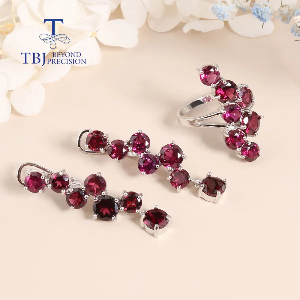 Кольцо и серьги из серебра 925 пробы с гранатом