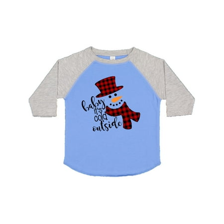 Inktastic Baby It s Cold Outside Cute Snowman in Plaid Print Gift Toddler Boy or Toddler Girl T-Shirt