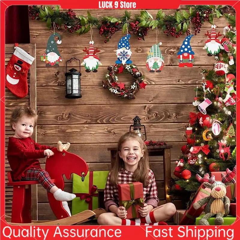 50PCS Christmas Wooden Gnome Cutouts Slices Santa Claus Christmas Tree Decoration Ornaments DIY Craft Home Decor