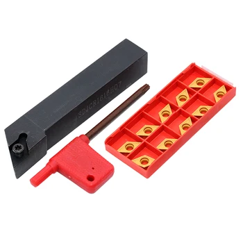 10PCS DCMT070204 carbide knife and 1PC SDJCR1010 or SDJCL1212H07 turning tool head metal lathe cutting tool set