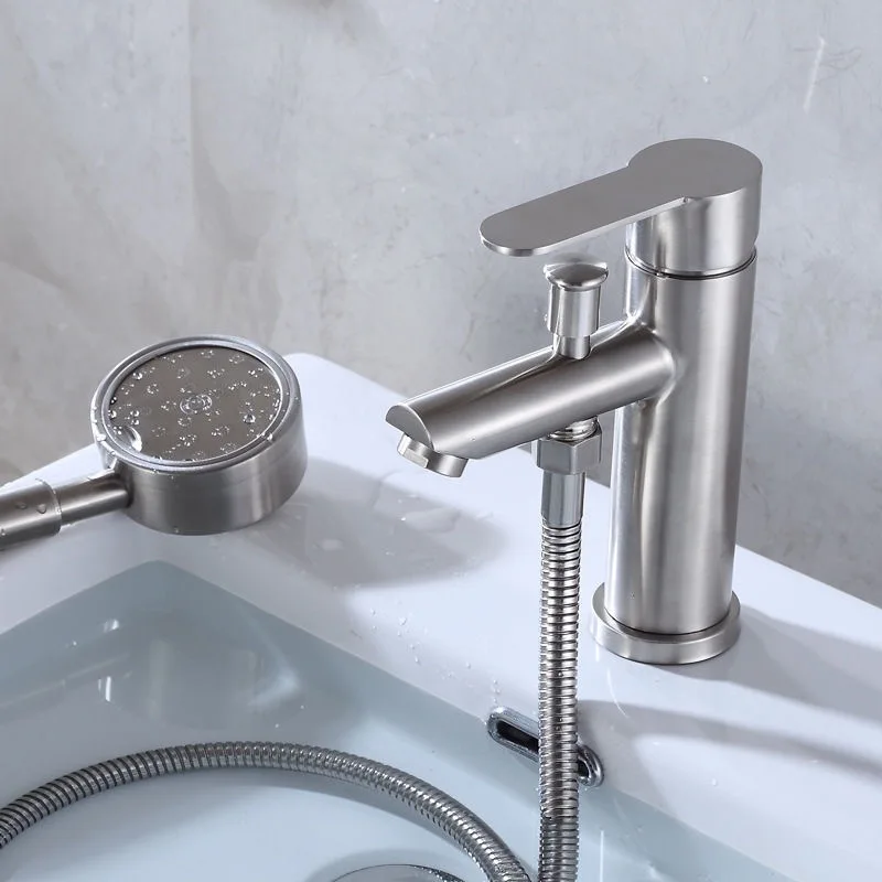 Смеситель для раковины с одним отверстием из нержавеющей стали и насадкой для душа, двойного назначения для горячей и холодной воды для мытья волос в ванной комнате