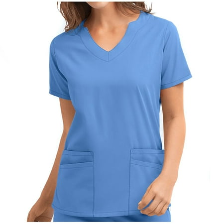 Christmas Clearance SuoKom Scrubs Tops Women Tops Short Sleeve V-neck Tops Working Uniform Solid Color with Fours Pockets Blouse