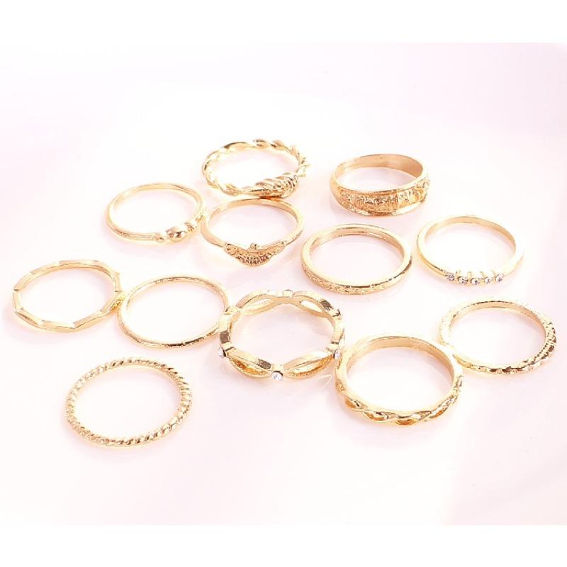 Кольцо Кольцо с бриллиантом в стиле ретро «Двенадцать комбинаций витых, завязанных и резных колец в комплекте из 12 частей» золотой