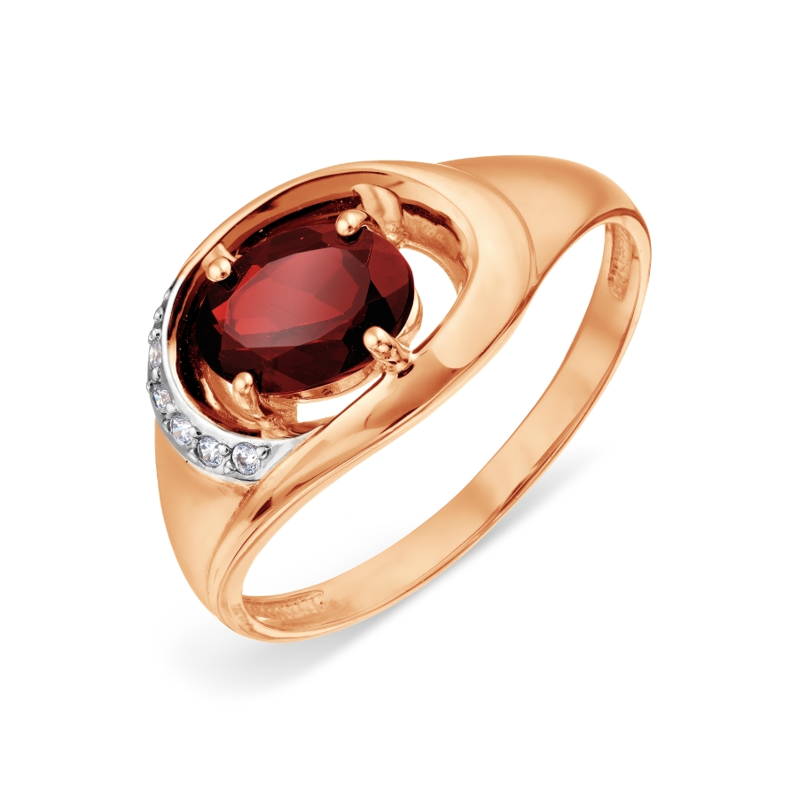 Кольцо из красного золота 585 пробы с гранатом и бесцветными фианитами (арт. Т147018585). Размер 16,5.