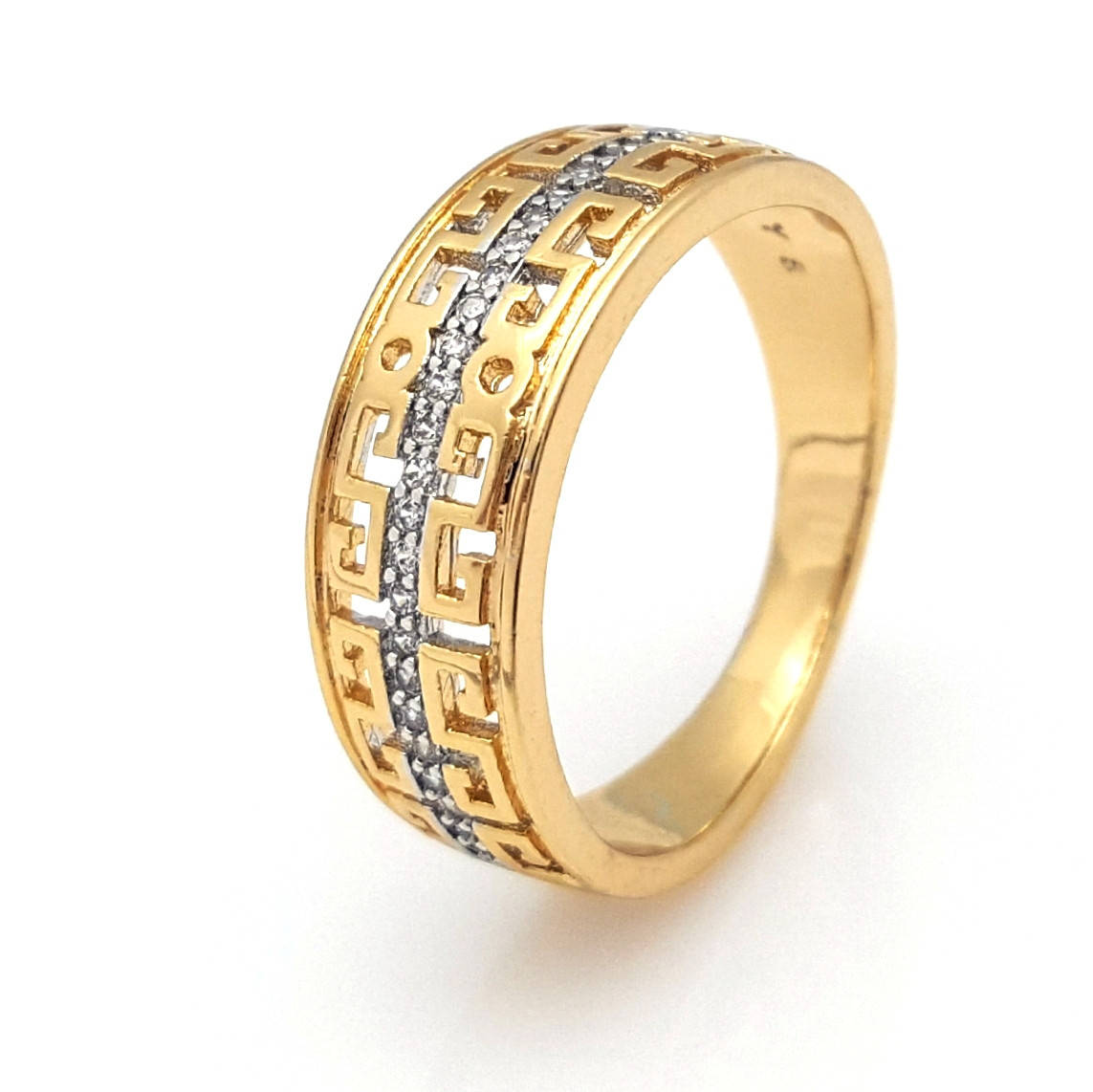 Кольцо с греческим узором и дорожкой циркония, p. 16 5, р. 17, p. 18, позолота + родий, Xuping, 18К