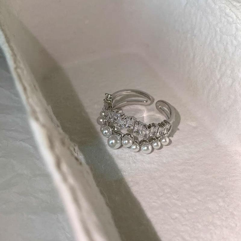 Кольцо с двойным открытым металлическим кольцом из циркония и жемчуга, женское, легкое, роскошное, ретро, изысканное, модное, универсальное кольцо