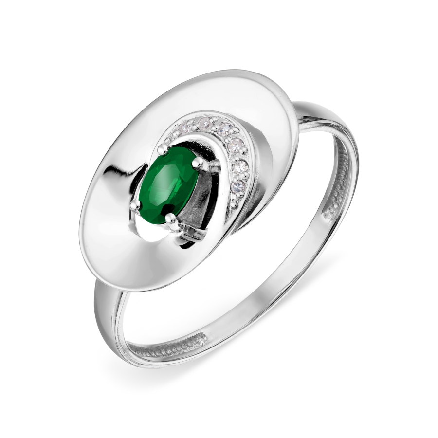Кольцо из белого золота 585 пробы с белыми бриллиантами и изумрудом (арт. Т301018746). Размер 16.