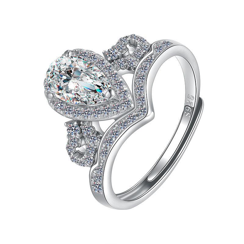 Кольцо с короной из стерлингового серебра 1 карат S925, женское трендовое кольцо с каплей воды и бриллиантами V-образной формы, открытое кольцо с волной Opening Adjustable