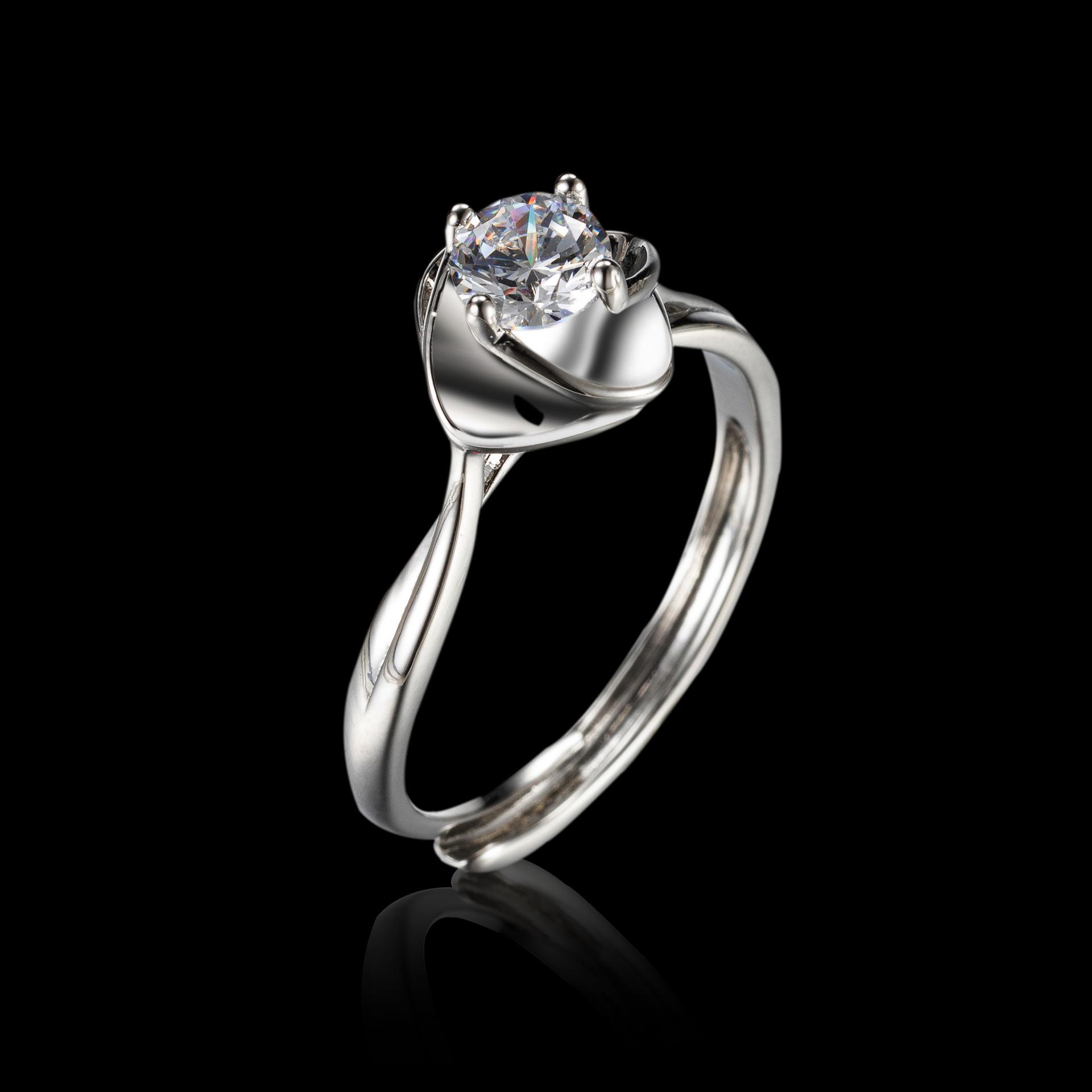 Кольцо с круглым камнем, восемью сердцами и восемью стрелами, женское, с четырьмя когтями, открытое кольцо