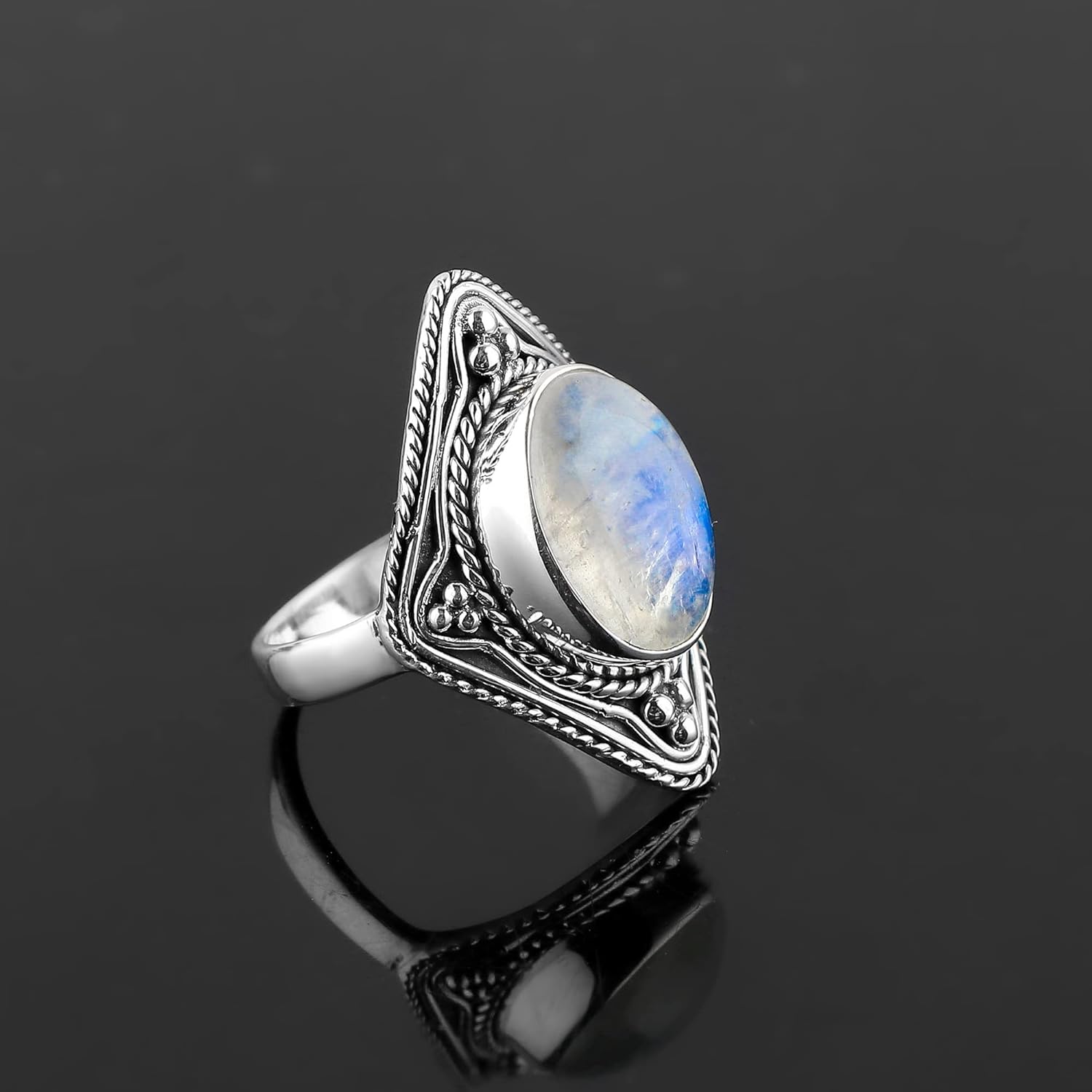 Кольцо с лунным камнем, кольцо из цельного серебра 925 пробы, женское кольцо, дизайнерское кольцо, эффектное кольцо, кольцо с уникальным дизайном, серебряные украшения 12
