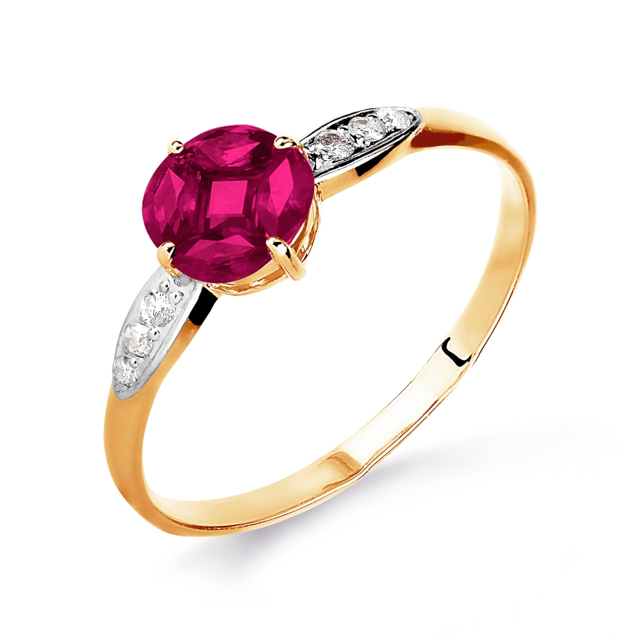 Кольцо из красного золота 585 пробы с белыми бриллиантами и рубином (арт. Т141015834-01). Размер 16.