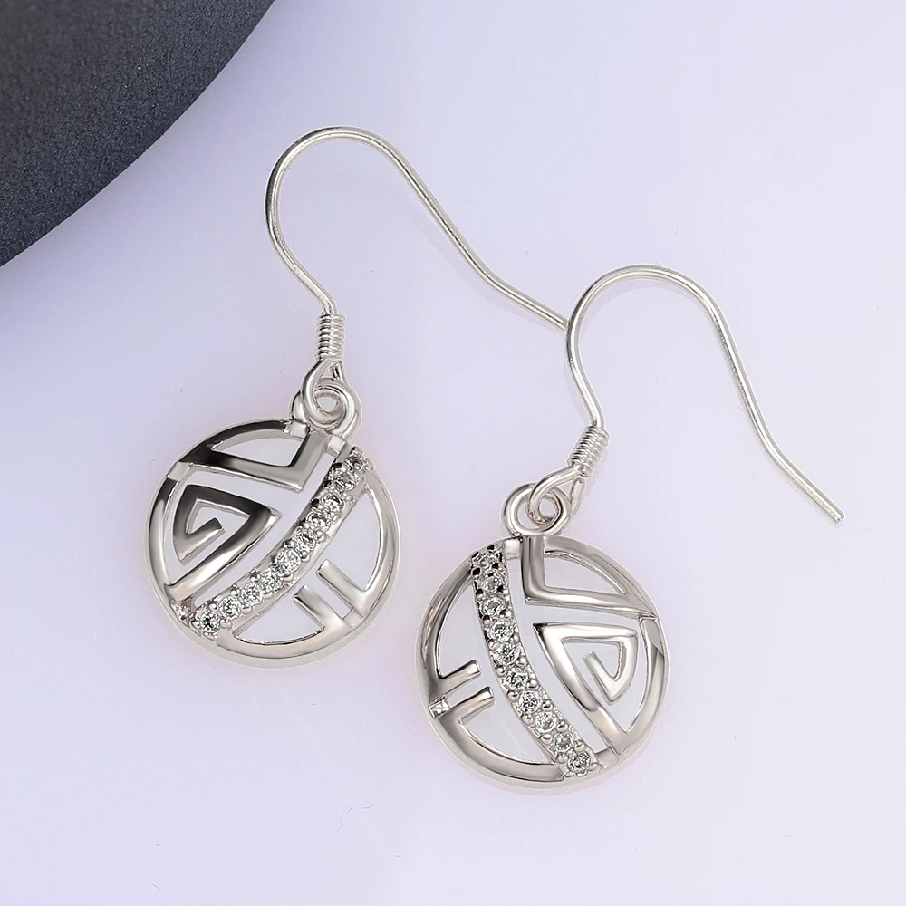 SP044 Real 925 Sterling Silver Crystal Circle Earring For Women Making Jewelry Gift Wedding Party Engagement