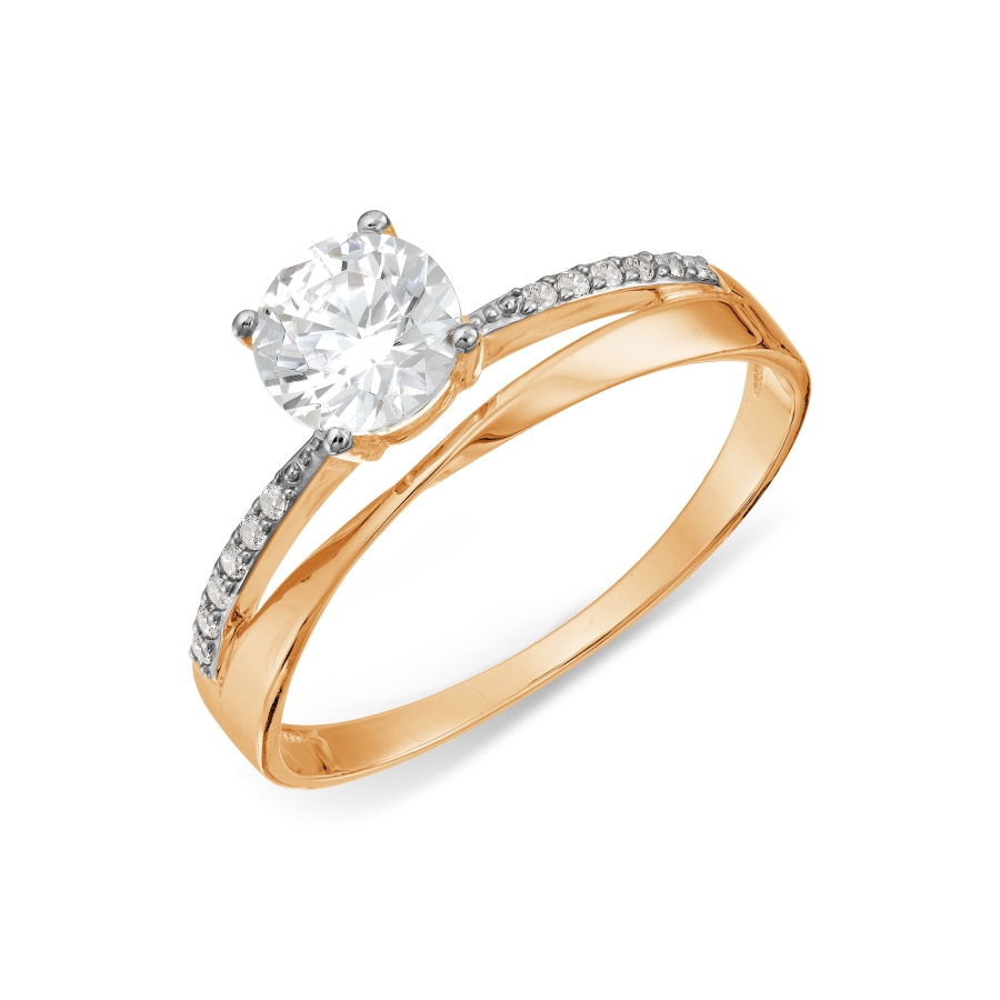 Кольцо из красного золота 585 пробы с бесцветными фианитами (арт. Т147017713). Размер 16,5.