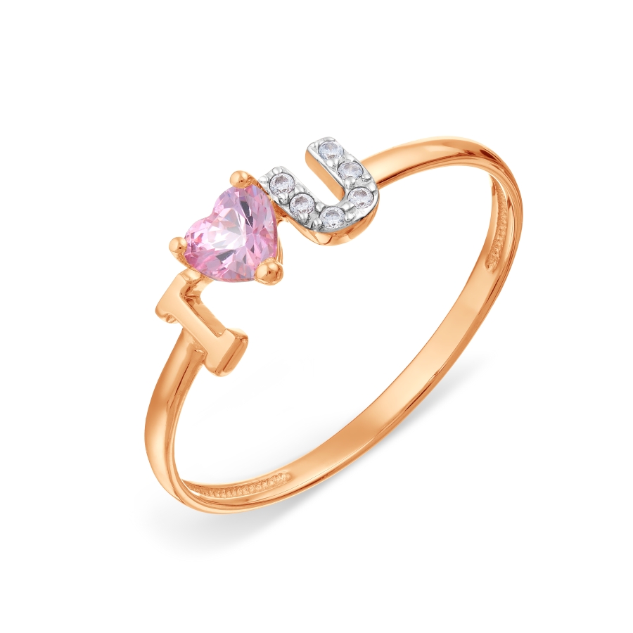 Кольцо из красного золота 585 пробы с бесцветными фианитами (арт. Т147018299). Размер 16.