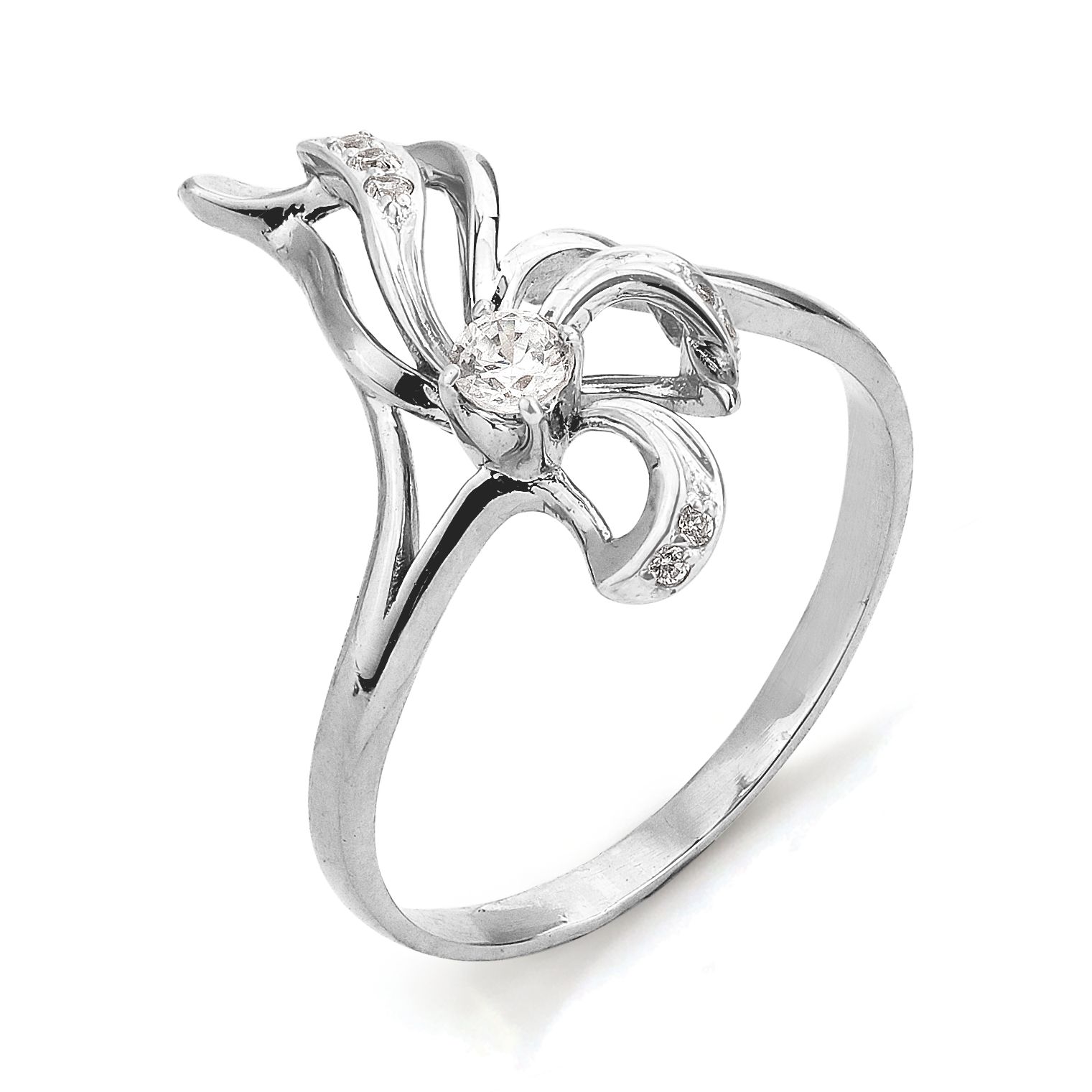 Кольцо из белого золота 585 пробы с бесцветными фианитами (арт. Т302013105). Размер 17,5.