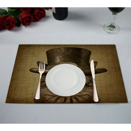 ECZJNT Steampunk Steam Punk Cat Placemat Table Mat Cup Mat 12x18 inch Set of 2