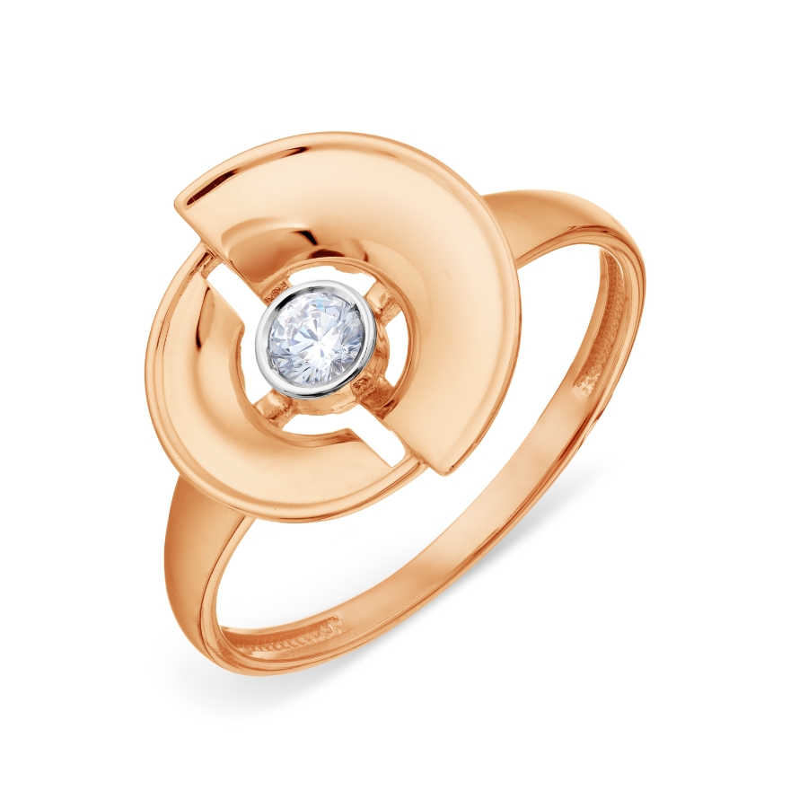 Кольцо из красного золота 585 пробы с бесцветными фианитами (арт. Т142018727). Размер 16.