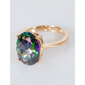 Кольцо с фианитом мистик "Овал", позолота с родированием, размер 19