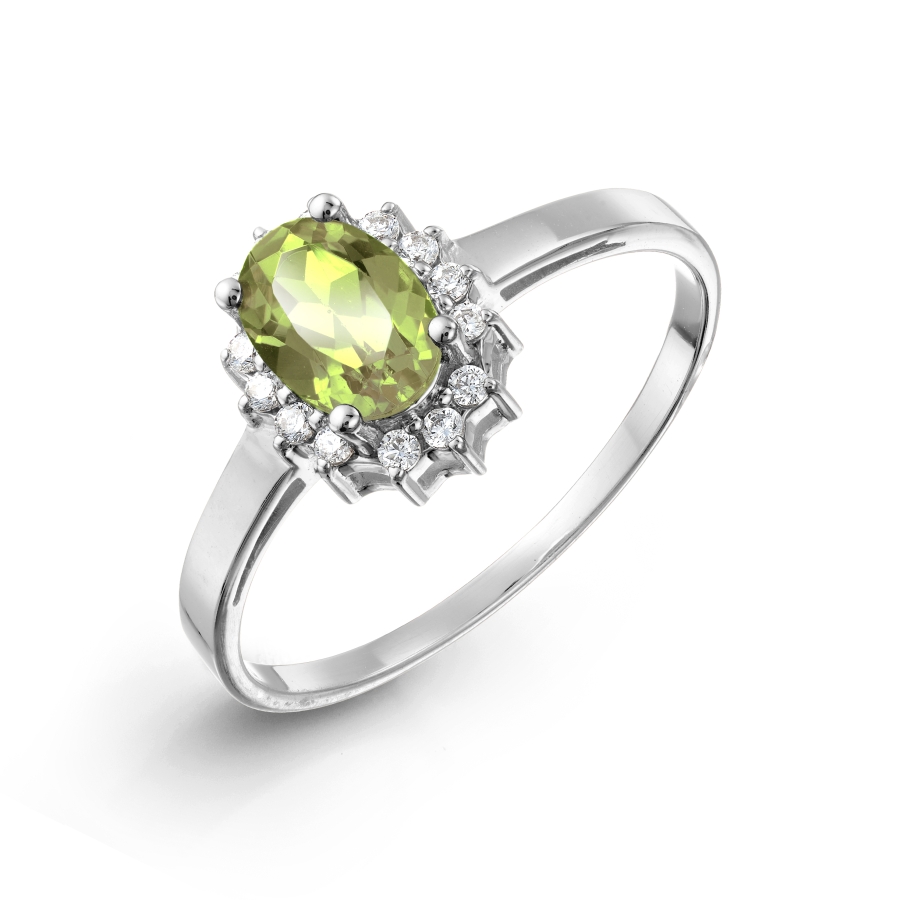 Кольцо с хризолитом и фианитами Линии Любви, Кольцо Т303017677