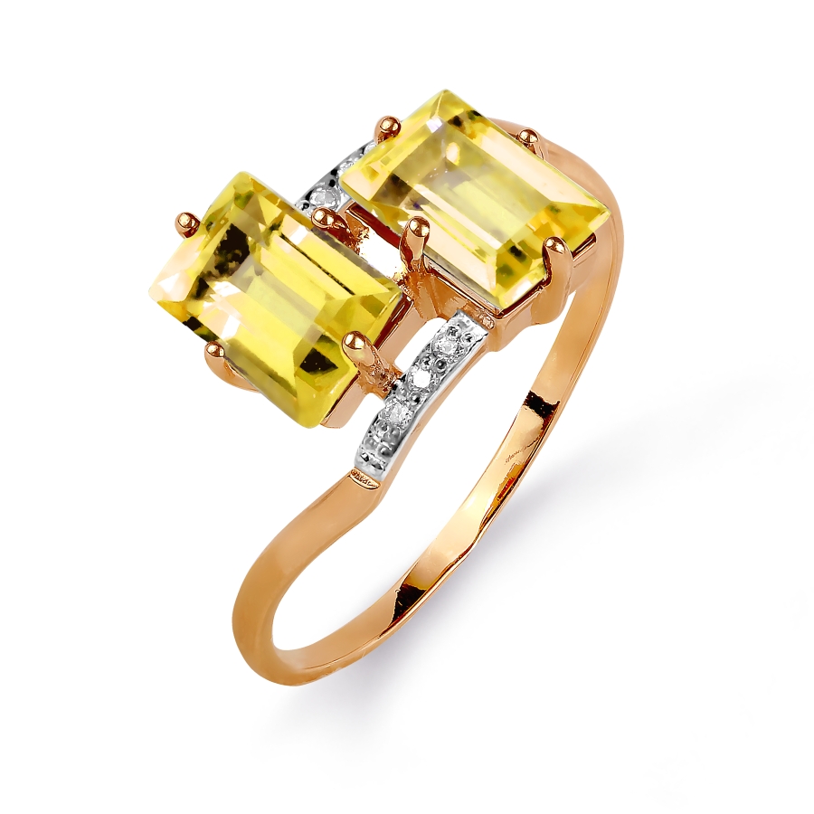 Кольцо из красного золота 585 пробы с цитрином и бесцветными фианитами (арт. Т143015590). Размер 16.
