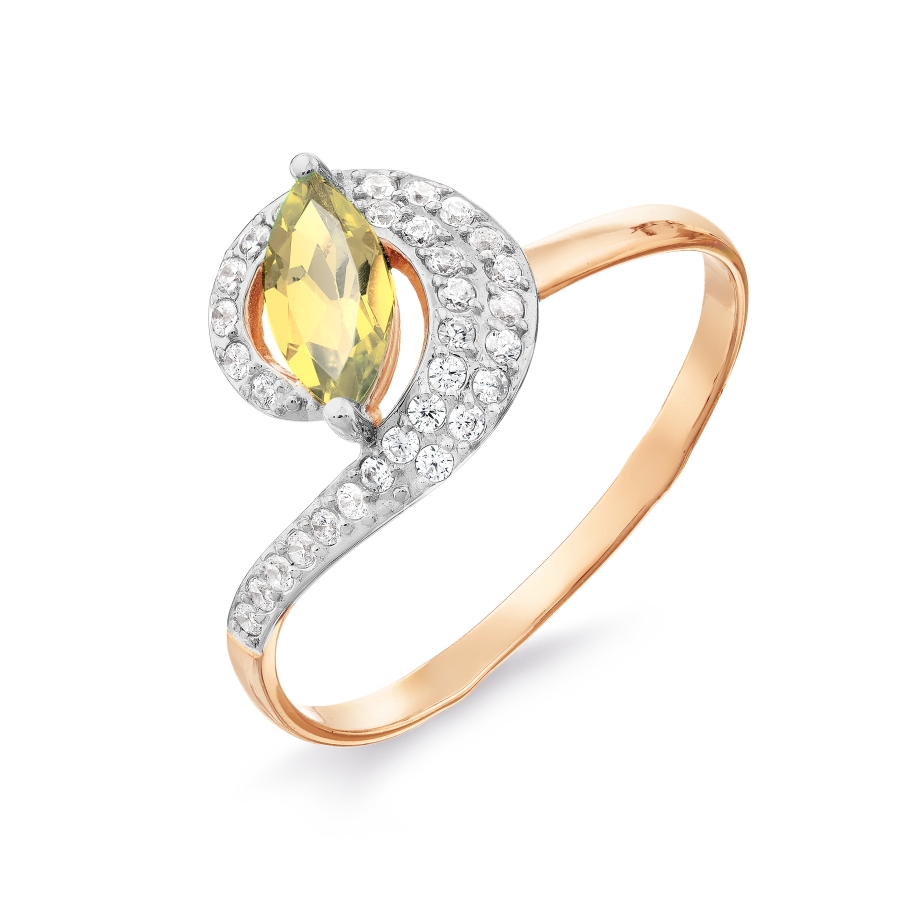 Кольцо с цитрином и фианитами Линии Любви, Кольцо Т143015024