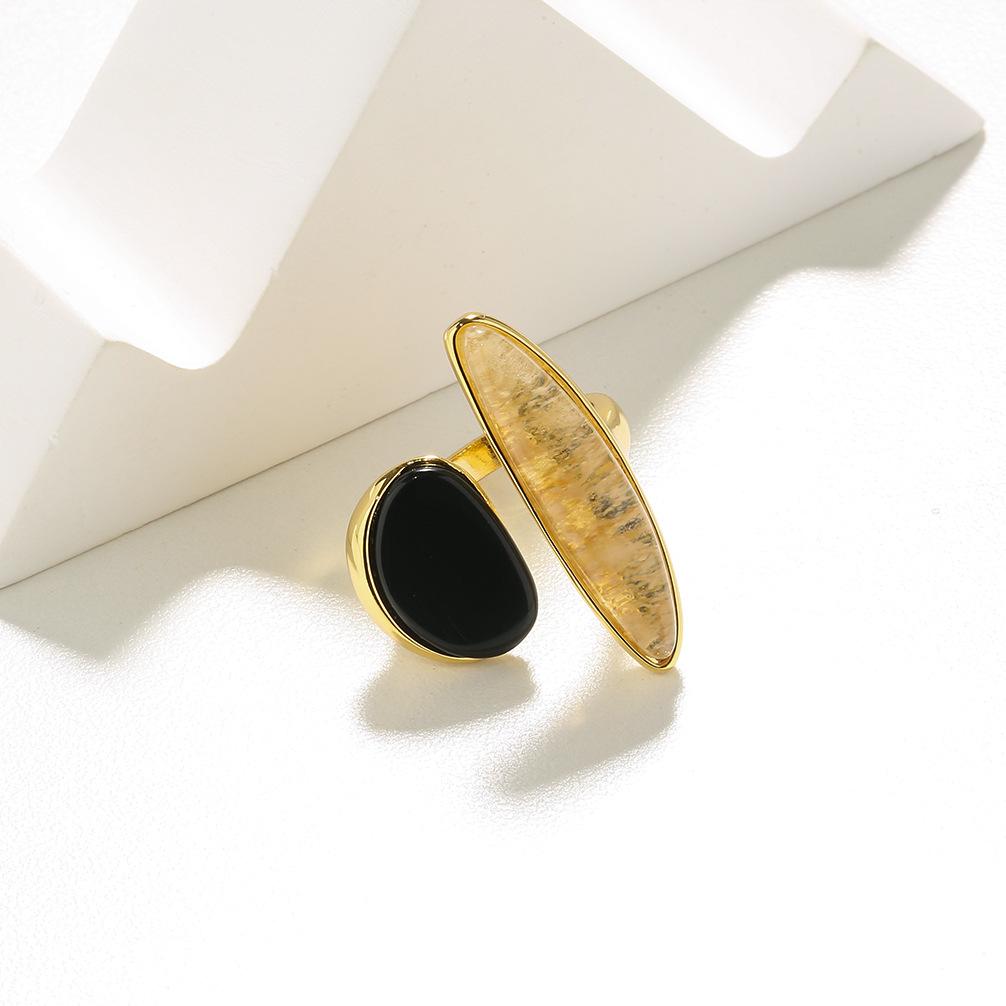 Кольцо французского дизайна с натуральным черным агатом и кристаллом чая особой формы для женщин, нишевое, высокого класса, легкое, роскошное, темпераментное, открытое, указательный палец